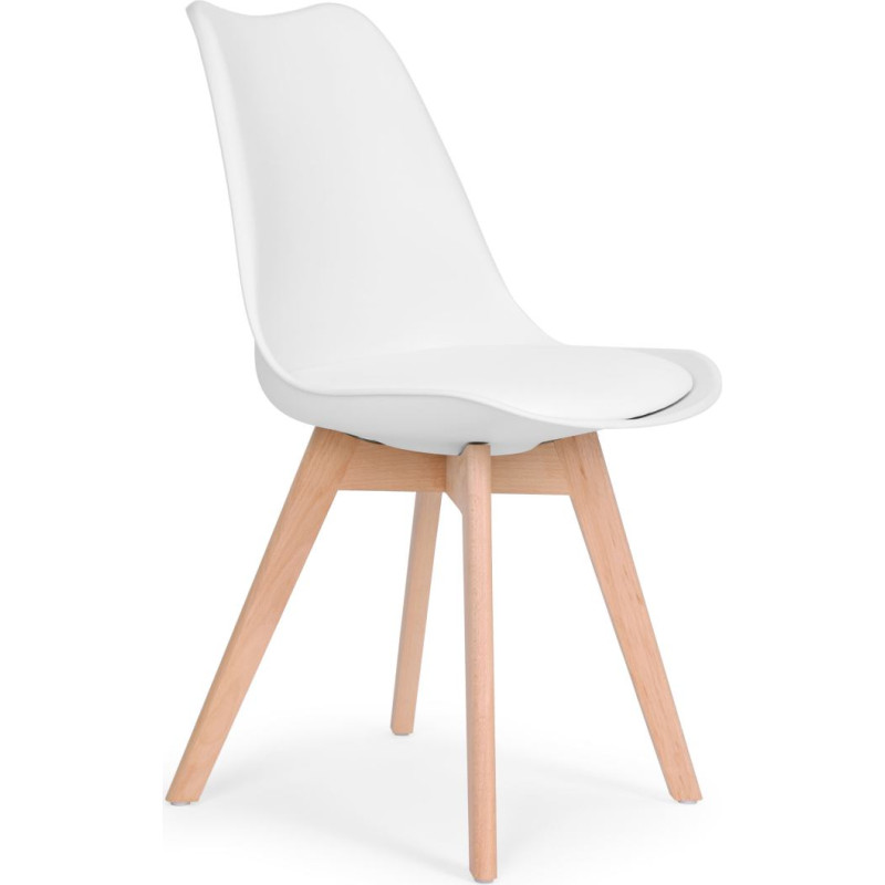 The combination of beech legs with an elegant eco-leather cushion gives the chair a modern but cozy look.