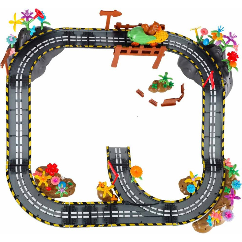 Magnētiskie klucīši ļauj izveidot trasi ar līkločiem, pagriezieniem, pauguriem unnobraucieniem, vadoties starp bagātīgu, krāsainu veģetāciju, kas piešķir visai konstrukcijai unikālu raksturu. Magnētiskieklucīši droši savienojas viens ar otru, ļaujot ātri un bez piepūles pārkārtot trasi. Papildu savienojumi apakšpusēnostiprina visu konstrukciju, padarot trasi vēl stabilāku pat ar paplašinātu izkārtojumu.