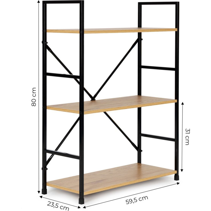 Modernhome Wide Wooden Shelf with Metal Frame LOFT Style, 3 Shelves ModernHome