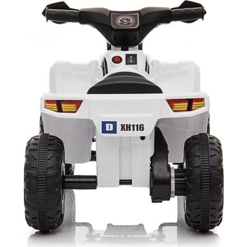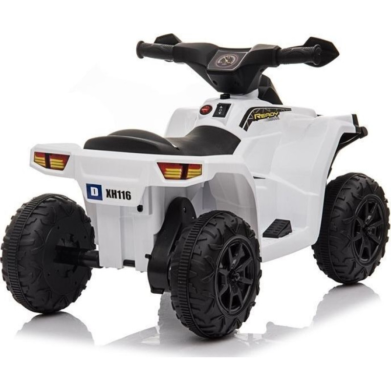 Tagad jūsu bērns var iegūt savu paša kvadraciklu! Attīstiet sava bērna aizraušanos jau tagad, lai nākotnē kopā izbaudītu plašas ceļus un piedzīvojumus. Ļaujiet viņam izjust prieku un brīvību, vadot šo kvadraciklu pašam! XH116 ir paredzēts visiem bērniem no 3 gadu vecuma, bet ar jūsu uzraudzību to var izmantot arī jaunāki braucēji. Šis kvadracikls ir CE sertificēts, un tā montāža ir ļoti vienkārša un ātra – tas aizņems apmēram 30 minūtes. Tehniskie dati: