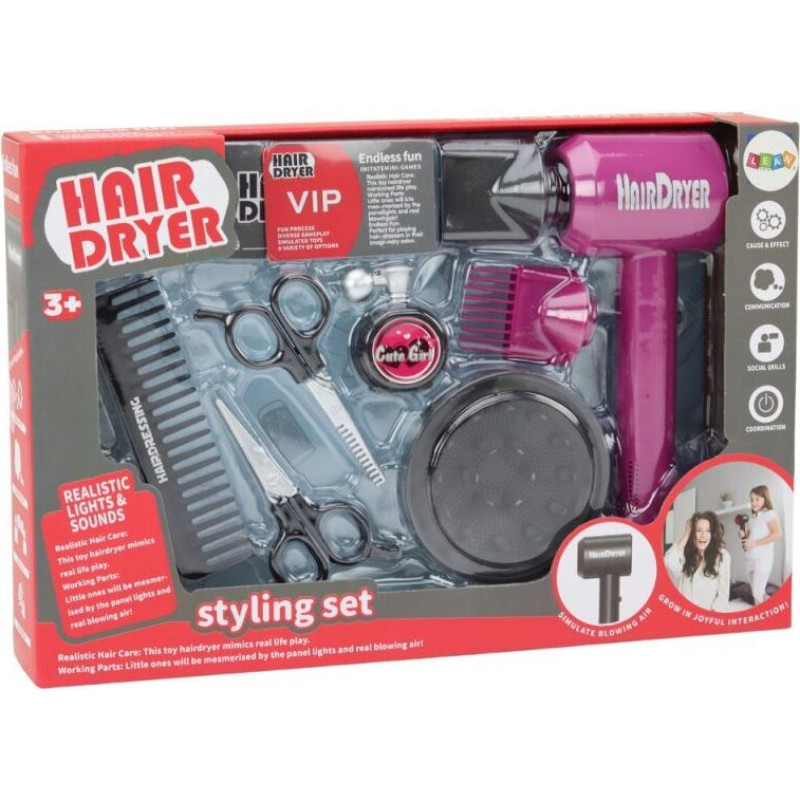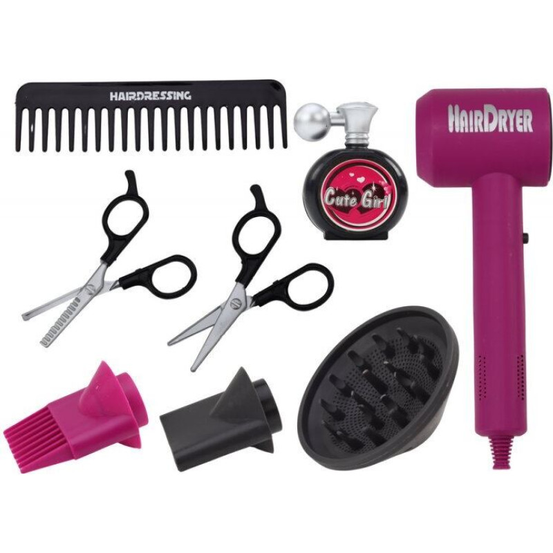 Bērnu frizētavas komplekts ir lieliska rotaļlieta mazajiem stilistiem, kuri vēlas justies kā īsti frizieri. Komplekts sastāv no 10 elementiem, kas sniedz daudz iespēju jautrībai un radošumam.