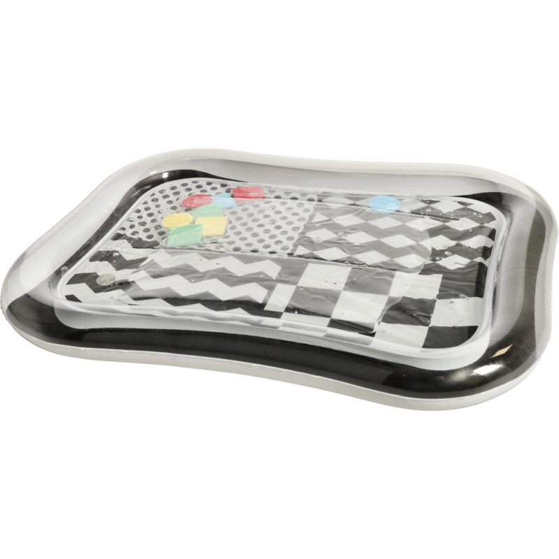 Paklājiņa iekšpusē ir izvietotas krāsainas ģeometriskas figūras, kas kustas, kad bērns kustas.