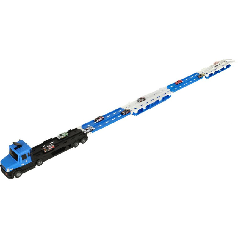 • unikāls komplekts - komplektā ir viss, kas nepieciešams fantastiskai izklaidei: piekabe, sacīkšu trase un 10 automašīnas.