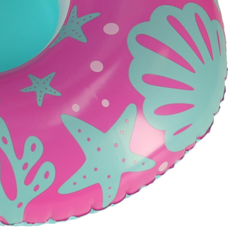Rozā ritenis ar sēdekli ir ideāli piemērots mazulim, kurš tikko sācis mācīties peldēt. Pateicotiescaurumiem kājām, jūsu bērns ritenī sēdēs stabili un neizkritīs no tā. Piepūšamais jumtiņš aizsargā jūsu bērna maigo ādu no saules kaitīgajiem stariem. Turklāt, dodoties uz baseinu, jumtiņu var noņemt. Ritenis ir izgatavots no izturīga PVC, tāpēc tas kalpos ne vienu vien vasaras sezonu.