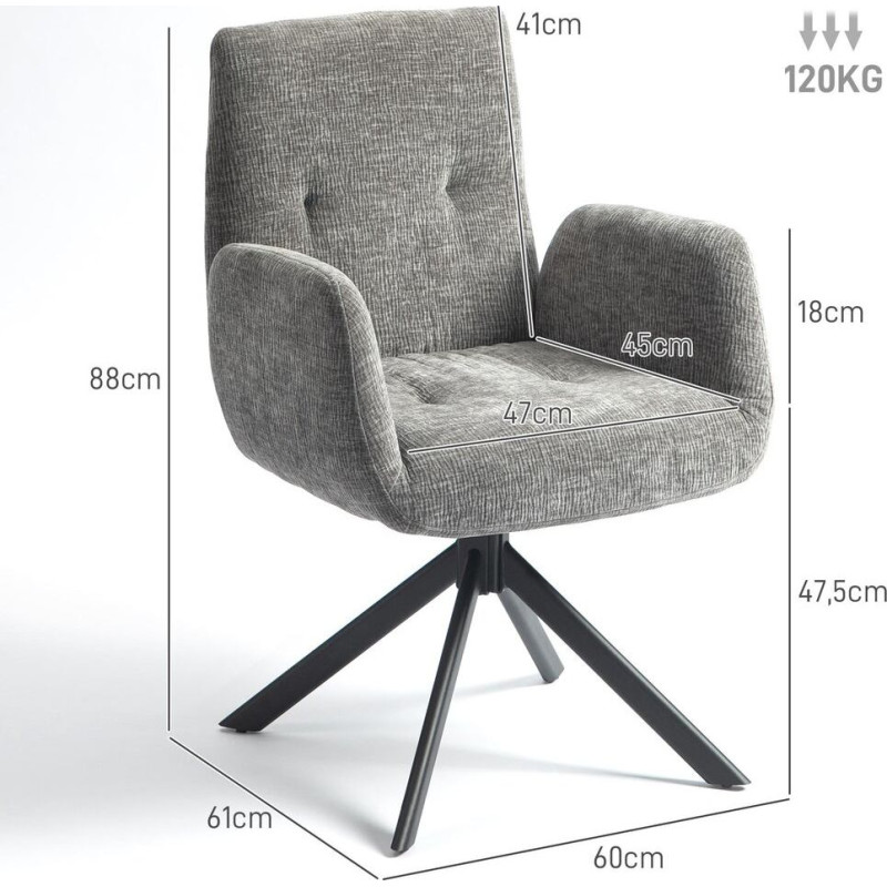 Polsterēts krēsls, akcentu krēsls, moderna dizaina, grozāms, līdz 120 kg, tumši pelēks
