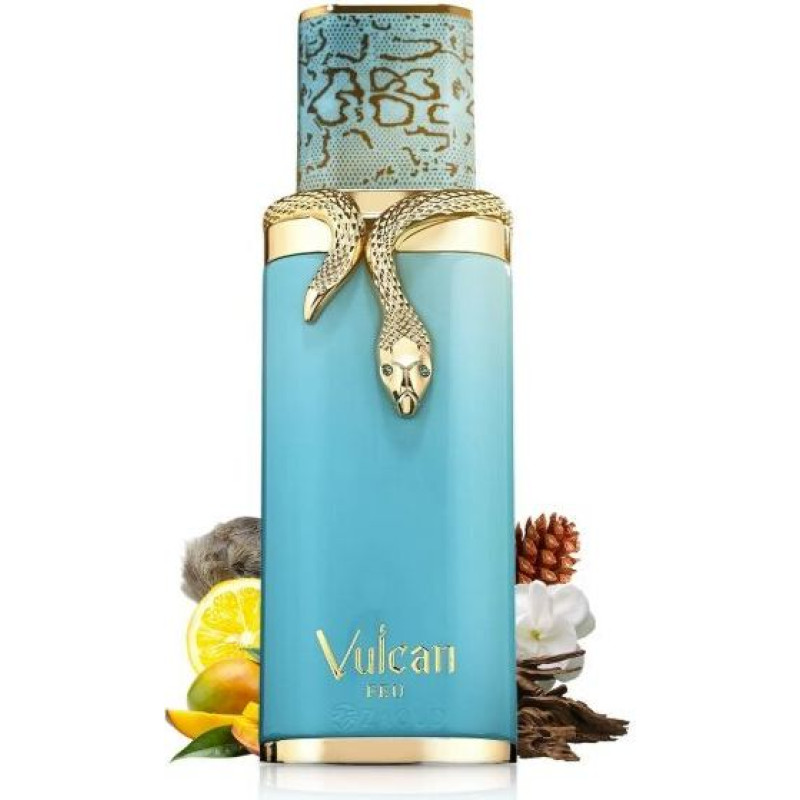 "Vulcan Feu " atveras ar pikantu ingvera un sulīga mango aromātu, ko papildina citrona svaigums un rabarbera pikantā garša. Sirdī atklājas jasmīnu un vijolīšu buķete, ko mīkstina praline saldums un rozā piparu graudiņu siltums. Smaržai izplūstot, atklājas bagātīga ciedra un ambras bāze, ko padziļina maigais tongaple un zemes sūnas, atstājot valdzinošu un ilgnoturīgu aromātu.