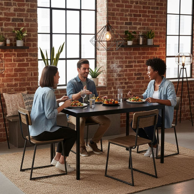 Modernhome Table for Kitchen Dining Room for 4-5 People Computer Desk 120x60 cm Black ModernHome