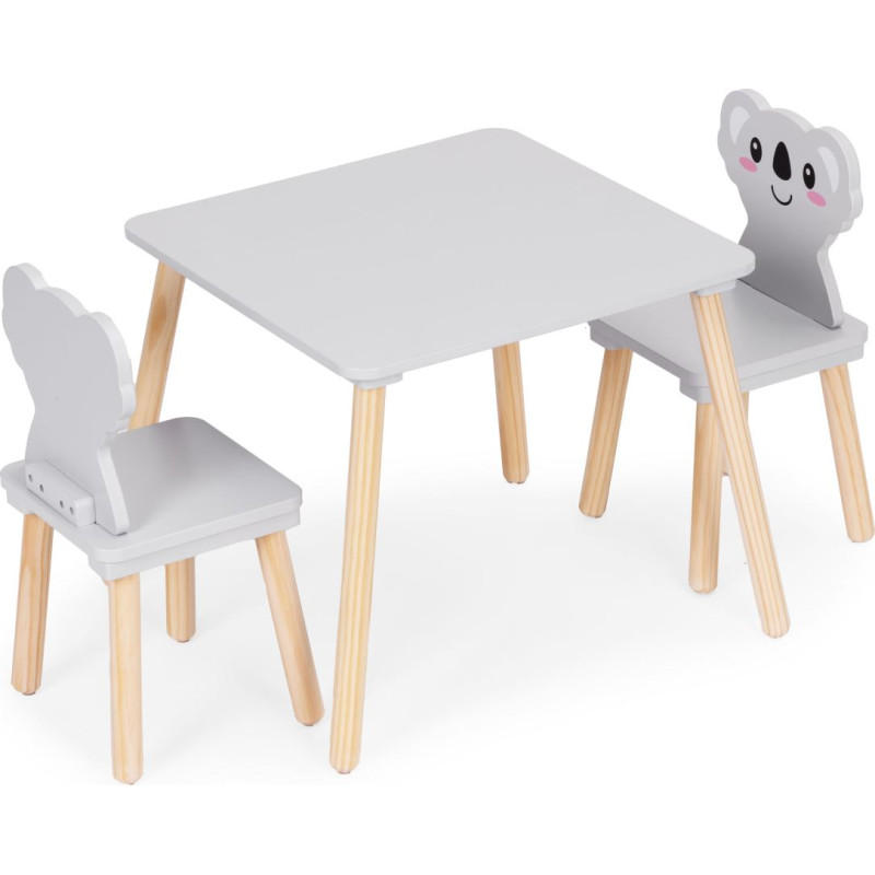 • Set includes: table + 2 chairs with koala-shaped backrests