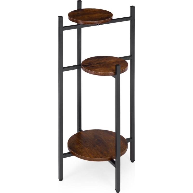 The flower stand is made of powder-coated steel, which ensures resistance to corrosion and mechanical damage. The chipboard shelves are finished in a wood-like color, highlighting the decorative, loft-style character of the furniture.