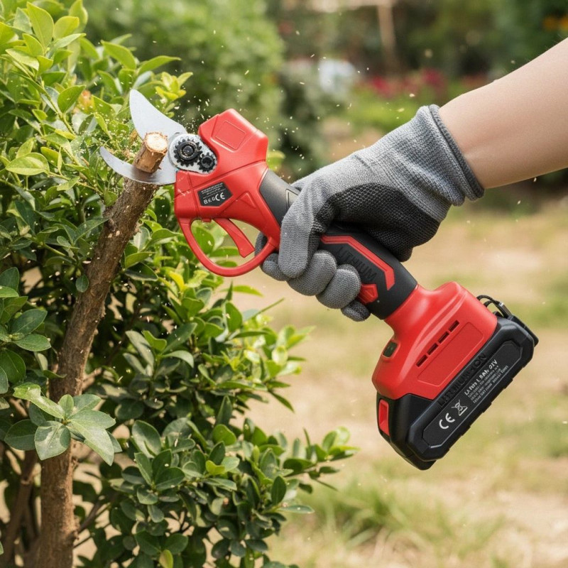 The cordless pruning shears perform well in any situation where precision and cutting speed matter. Ideal for maintaining fruit trees, ornamental shrubs, grapevines, and hedges. Thanks to solid blades and a powerful motor, it easily handles branches with a diameter of up to 30 mm. The lightweight design combined with cordless power makes it an excellent choice for both beginner gardeners and experienced orchardists. This is a tool that saves time, reduces effort, and delivers perfect results in all conditions.