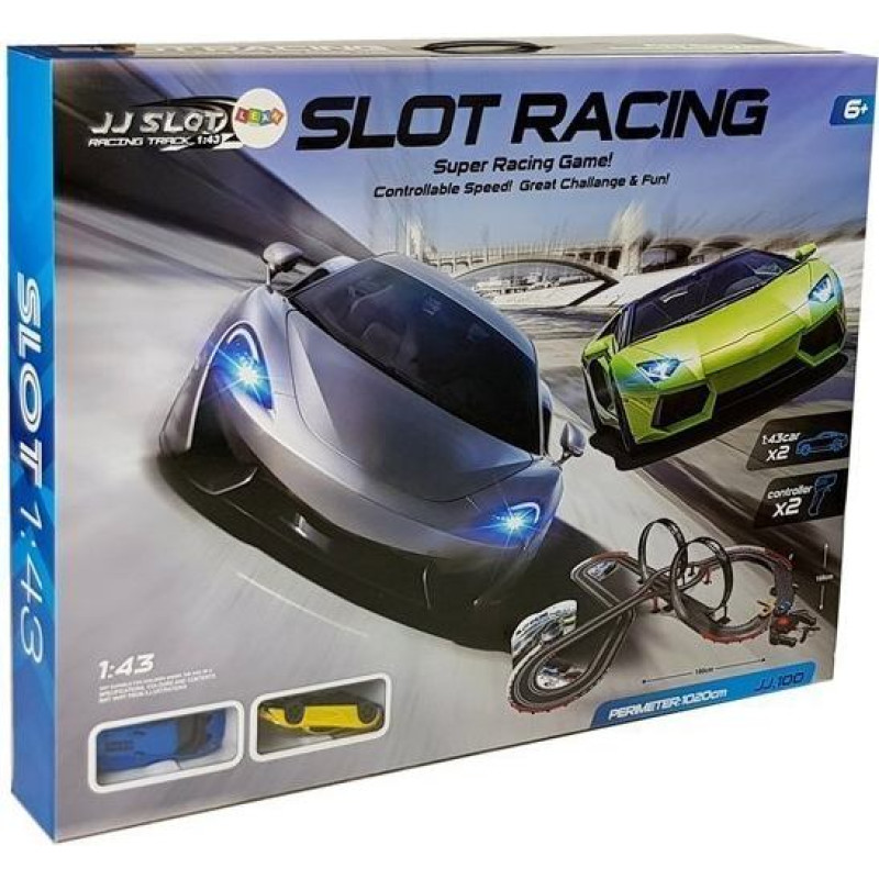 Divas cilpas un asi pagriezieni dažādos braucienu un patiks daudziem sacīkšu faniem. Jūs varat palielināt ātrumu ar komplektā iekļautajām tālvadības pultīm. Tie ir savienoti ar kontrolieri, kas darbina visu trasi.