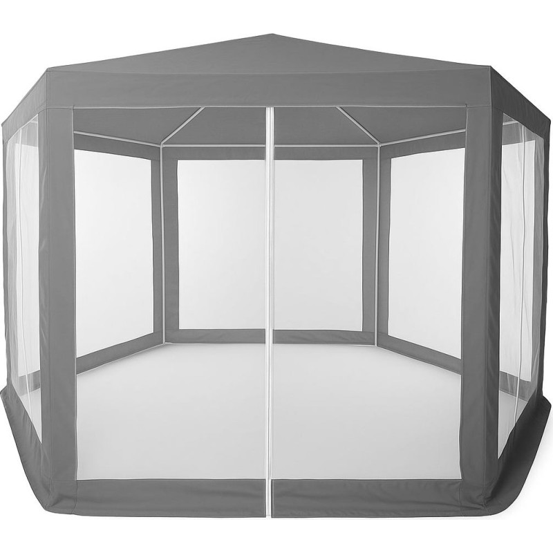 Mosquito netted walls effectively protect the tent’s interior from insects while letting in natural light. This keeps the inside bright, airy, and comfortable, even on hot days. The tent features a zippered entrance that ensures quick and convenient access to the interior. A practical feature that makes using the pavilion easier, especially when moving between the inside and outside frequently.