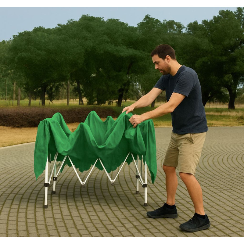 • The tent frame is made of powder-coated steel with 25x25 mm, 20x20 mm and 10x18 mm profiles. This ensures structural durability and resistance to deformation—even in strong winds and frequent use.