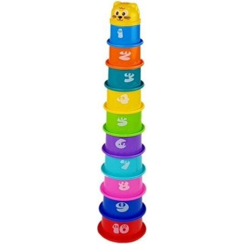Varavīksnes krāsu piramīda ir rotaļlieta, kas lieliski ietekmē mazuļa attīstību. Sastāv no dažādu krāsu krūzītēm ar apdrukām. Rotaļlietas augšpusē ir maza krūzīte ar kaķēnu apdruku. Krūzes ir izgatavotas no droša materiāla, kas ir izturīgs un izturīgs. Piramīdai ir ļoti vienkāršota, noapaļota forma, kas ietekmē drošības līmeni objekta lietošanā.
