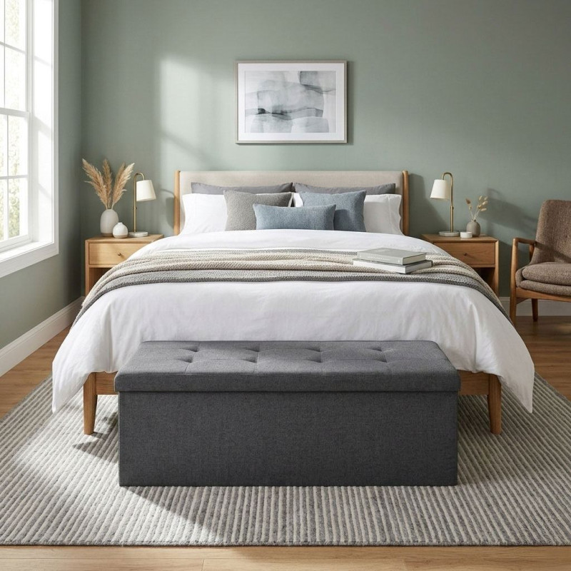 Modernhome Pufa pikowana 111x38 cm ze schowkiem tapicerowana ława skrzynia ciemnoszara ModernHome