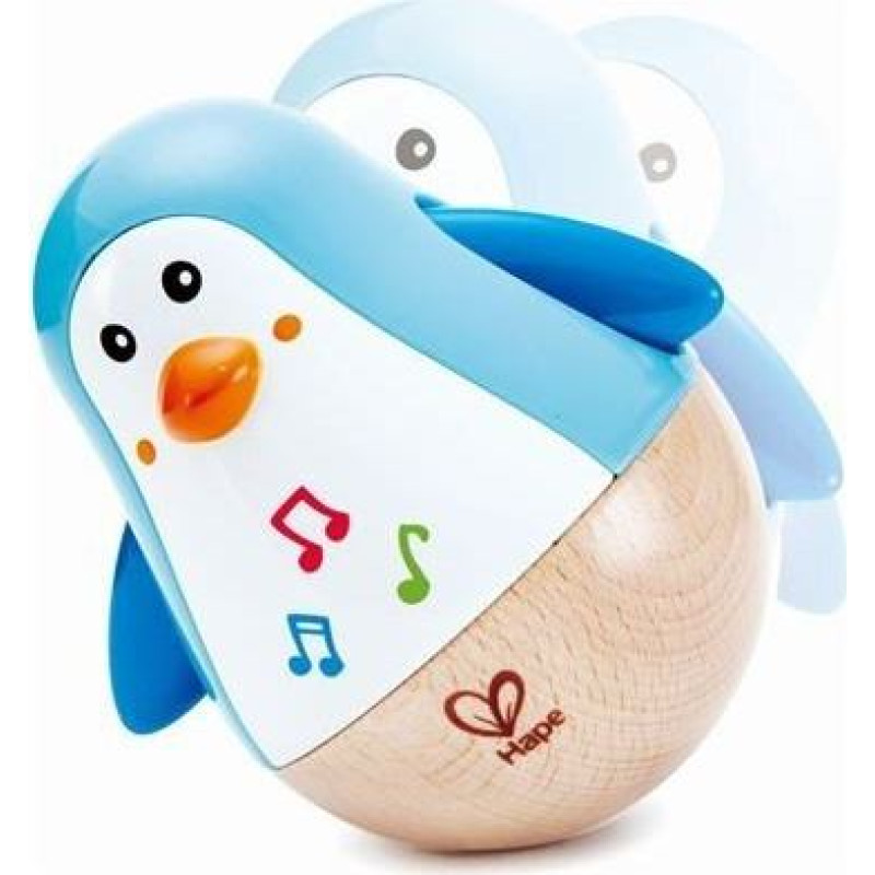Pateicoties Mūzikas Pingvīnam, bērni var izpētīt skaņas un būs sajūsmā par šo pingvīnu, kurš klusi zvana un smieklīgi šūpojas. Mūsu apņemšanās Sākta 1986. gadā, HAPE, kas veidots no tās dibinātāja Pītera Handšteina iniciāļiem, turpina īstenot savu devīzi: Mīli spēlē. Mācies. Pārliecināti, ka mācīšanās notiek spēles ceļā, mūsu rotaļlietas ir izstrādātas ar mērķi iedvesmot spēli, mācīšanos un pasaules izpēti, kurā dzīvojam. Pateicoties mūsu atbildīgajām praksēm: inovatīviem un ekoloģiskiem ražošanas procesiem, mūsu iepakojumiem, kas izgatavoti no 70% reciklētām papīra, mūsu nekaitīgajām sojas tintēm, mūsu pašu bambusa meža izmantošanai, kuru finansē UNESCO, mēs cenšamies samazināt mūsu ietekmi uz vidi.