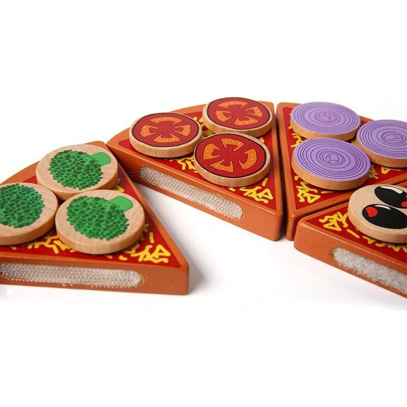 Komplekts picas dekorēšanai. Rotaļlieta ir izgatavota tikai no koka. Izmēri: Pica: 20 cm x 15 cm (diametrs x biezums). Picas dekorēšanas elementu diametrs: 3,5 cm