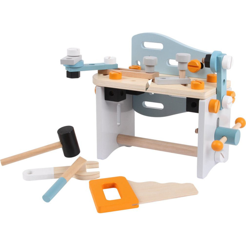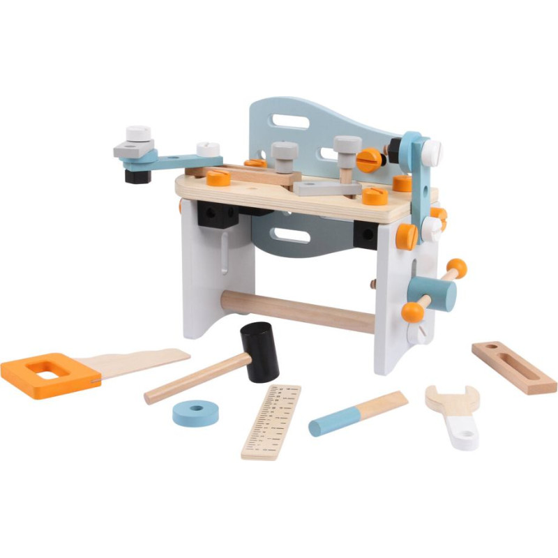 Komplektā ietilpst 52 dažādi koka elementi, ko var kombinēt daudz dažādos veidos, radot konstrukcijas pēc sava prāta. Rotaļlietas daļas ir bērnam drošas un izgatavotas no izturīga materiāla.