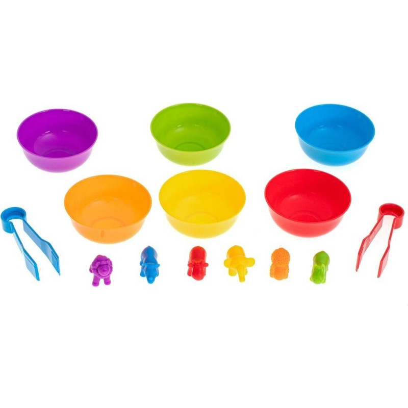 Lielisks komplekts, lai mācītos skaitīt. Nozags jebkura mazā sirdi. Apvieno mācīšanos un izklaidi. Rotaļas ar dzīvniekiem rosina iztēli un radošu domāšanu. Materiāls: plastmasa. Komplektā: 6 krūzes, 2x knaibles, 36 dzīvnieki. Knaibles garums: 9,5 cm.