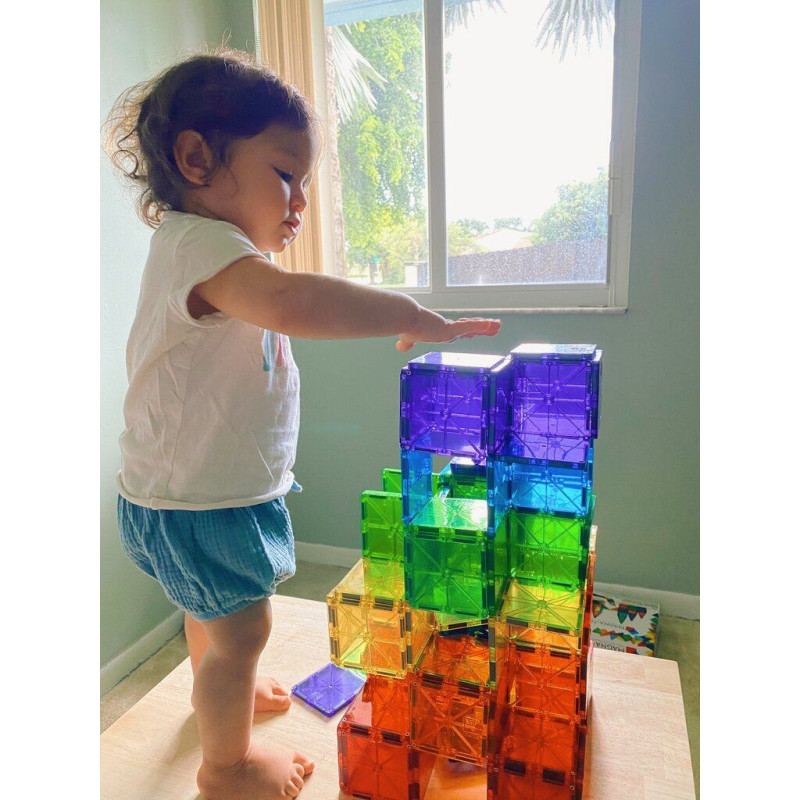 Magnetic Constructor MAGNA-TILES ir ne tikai lielisks līdzeklis, kas palīdz bērniem atraisīt iztēli un izpausties, bet arī lielisks līdzeklis pamatprasmju uzlabošanai. Šis 32 daļu konstrukcijas komplekts ir lieliska izvēle bērniem no 3 gadu vecuma. Lai ar to spēlētu, nav nepieciešamas nekādas instrukcijas, vienkārši savienojiet detaļas un atbrīvojiet savas radošās spējas, lai izveidotu sapņu struktūras, sākot no kopīga filmas varoņa līdz iespaidīgai karaliskajai pilij. MAGNA-TILES konstruktors palīdz attīstīt STEM pamatprasmes un ļauj bērniem brīvi un bez jebkādas struktūras spēlēties vienatnē vai kopā ar draugiem. Nav pareizas vai nepareizas atbildes, tāpēc bērni var likt lietā savu iztēli un izklaidēties spēlējoties. 32 daļu caurspīdīgais konstruktors ir savietojams ar citiem MAGNA-TILES komplektiem, tāpēc iespējas konstruēt un atraisīt savu iztēli ir neierobežotas! Komplektā ir 14 mazi kvadrāti, 2 lieli kvadrāti, 4 vienādsānu trijstūri, 4 taisnstūri un 8 vienādmalu trīsstūri.