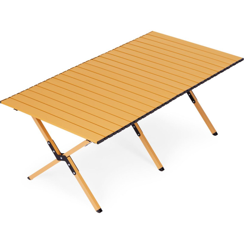 The rolled tabletop made of slats creates a comfortable surface for everyday use. It works perfectly for meals, preparing snacks or placing drinks and small accessories during camping, picnics or barbecues.