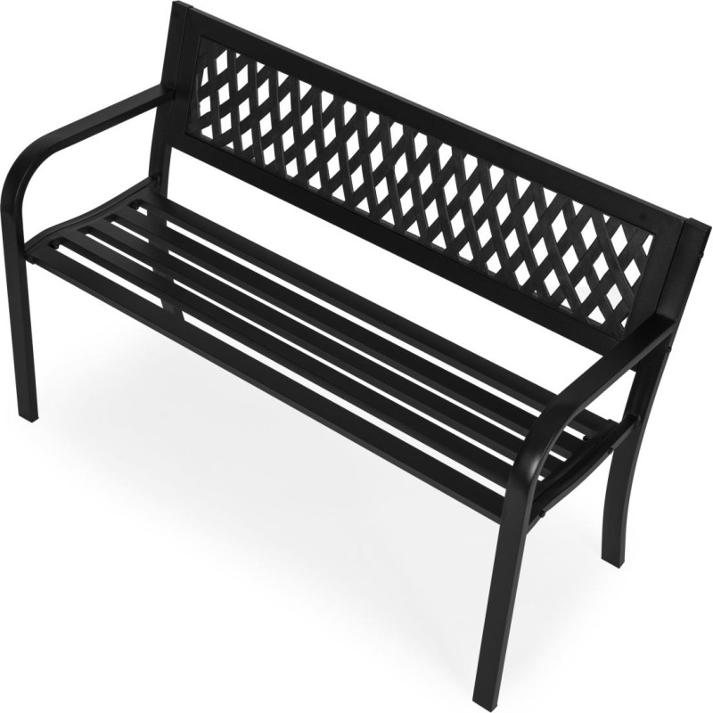 Multigarden Ławka ogrodowa z ażurowym oparciem 120x50 cm metalowa parkowa czarna MultiGarden