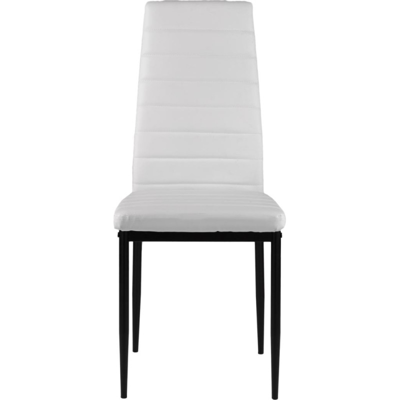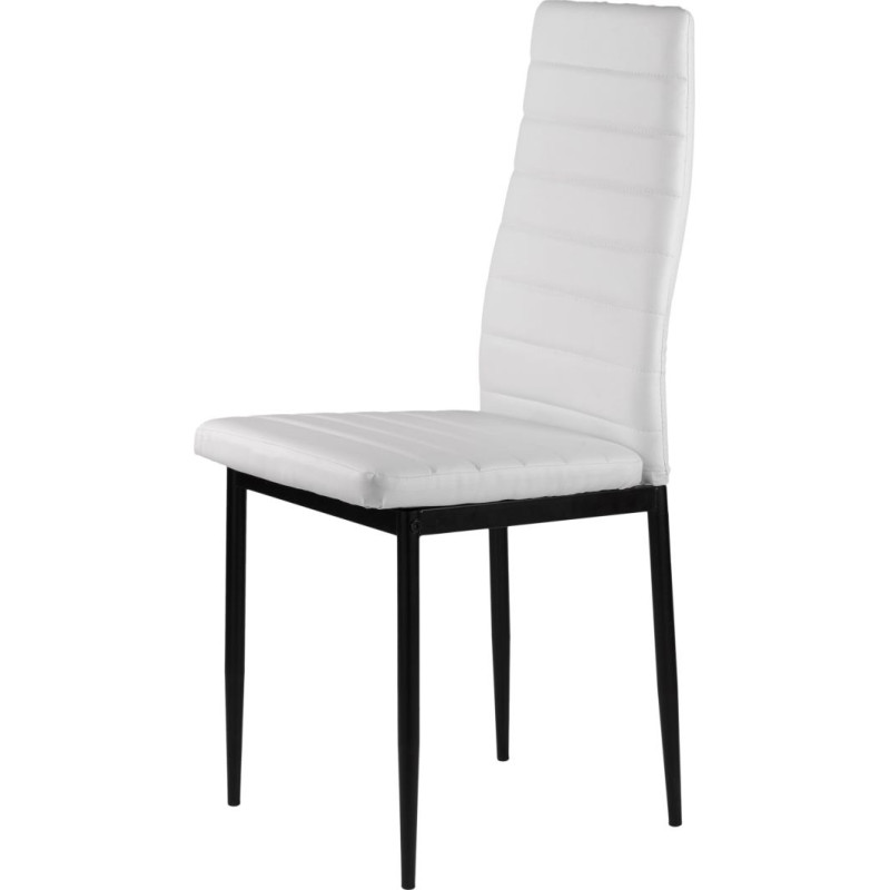 These chairs will perfectly complement your dining table in the kitchen or dining room. The white upholstery made of soft eco-leather combined with black, sleek legs creates a stylish contrast, making these chairs a great addition to any interior, adding a unique character.