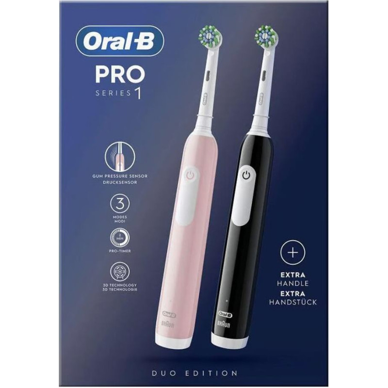 Oral-B Pro Series 1 Elektriskā zobu birste duo Rozā un melnā, 3D tīrīšana, 2 birstes galviņas, 1 lādētājs