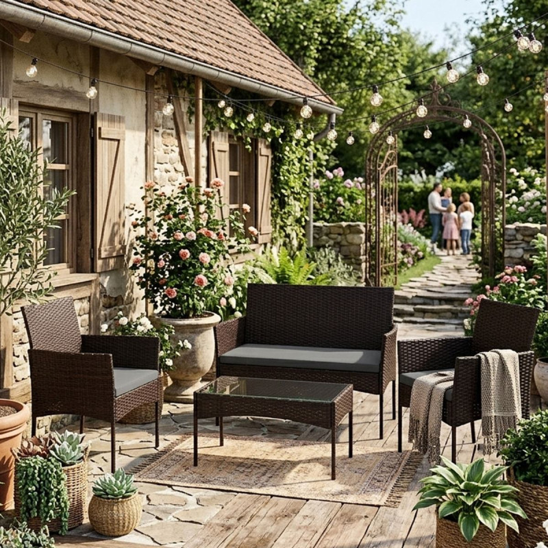 Multigarden Komplet mebli ogrodowych z technorattanu ławka stolik krzesła brązowy MultiGarden