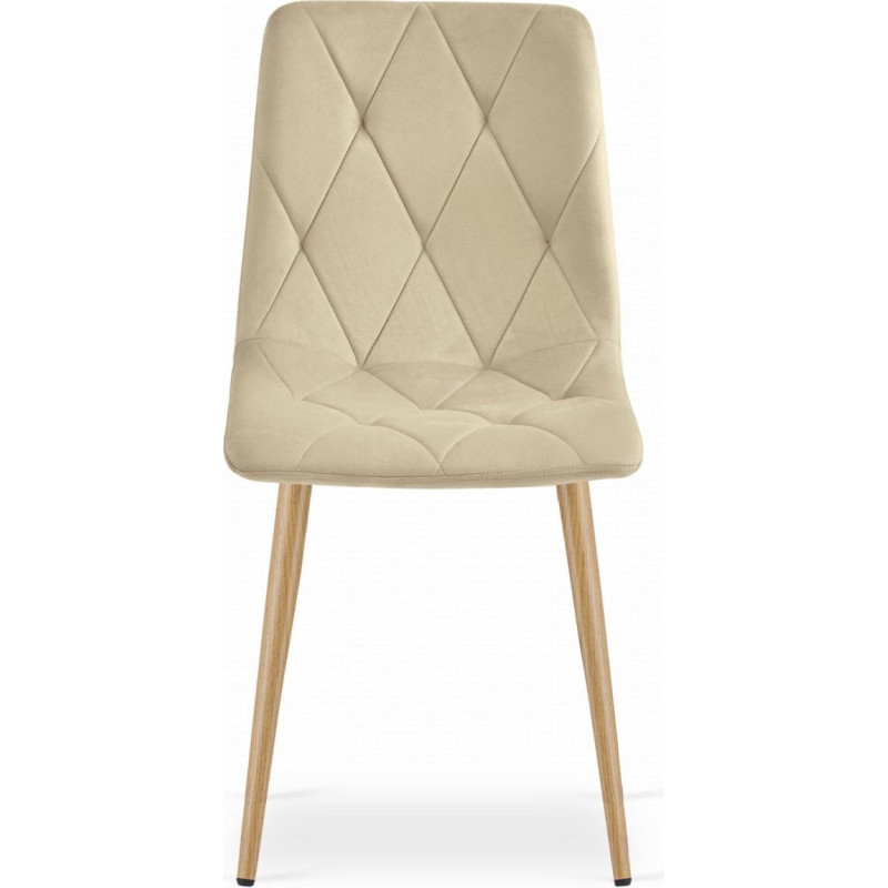Leobert Komplet 2 krzeseł tapicerowanych welurowych do jadalni salonu pikowane beżowe