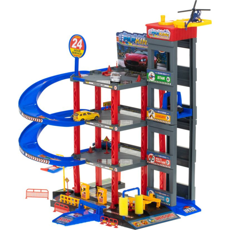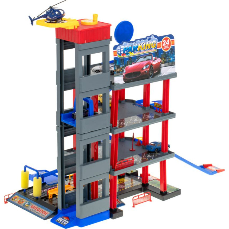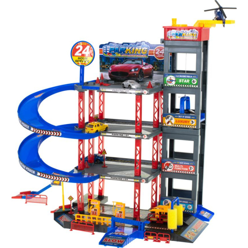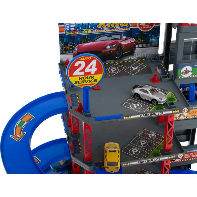 Autostāvvietā var iebraukt ar pacēlāja barjeru. Lai nokļūtu nākamajos stāvos, izmantojiet liftu. Novietojiet automašīnu augšpusē un skatieties, cik ātri jūsu rotaļu mašīna nokļūst lejā.