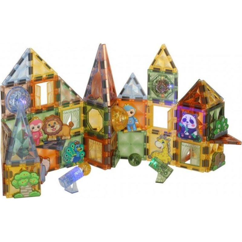 3D konstruktors Magnētiskie ķieģeļi Apgaismots dzīvnieku parks 90 el.