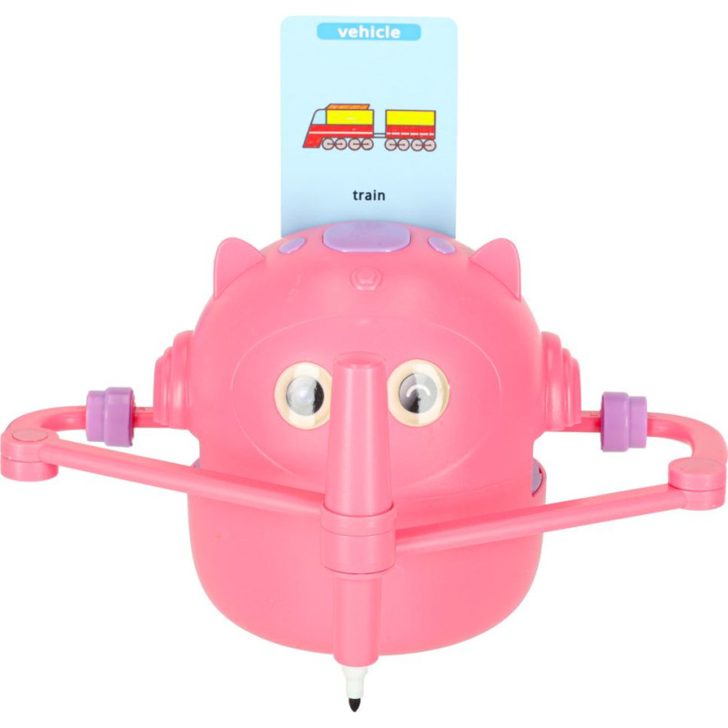Vienkārši izvēlieties vienu no 100 krāsainajām kartītēm, ievietojiet to robotā, ievietojiet marķieri un..... maģija sākas! Jautras mūzikas ritmā robots zīmē jūsu izvēlēto attēlu, kamēr jūsu bērns ar prieku vēro radošo procesu, lai pēc tam pats varētu to izkrāsot un pabeigt darbu.