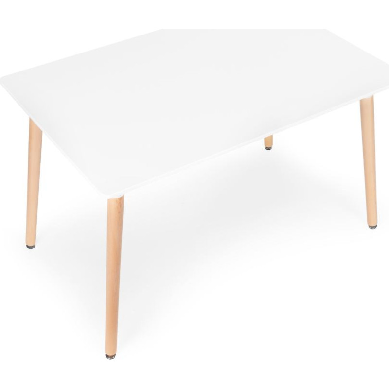The table legs are made of durable pine wood, and at their ends there are special, movable feet are provided, which will help to level the table and avoid scratching the floor. The table top is made of MDF board covered with a resistant veneer in matte white, under it there is ametal frame, in which the table legs are mounted.