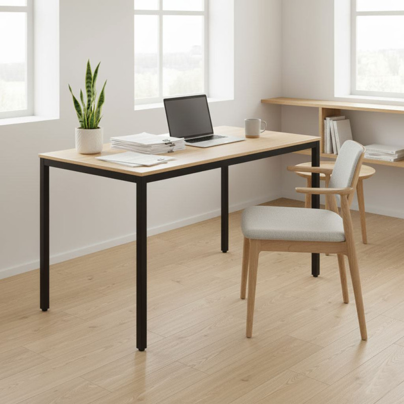 The tabletop is made of durable MDF board coated with melamine, resistant to scratches and easy to maintain. The structure is supported by powder-coated metal legs, ensuring resistance to corrosion and mechanical damage.