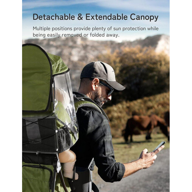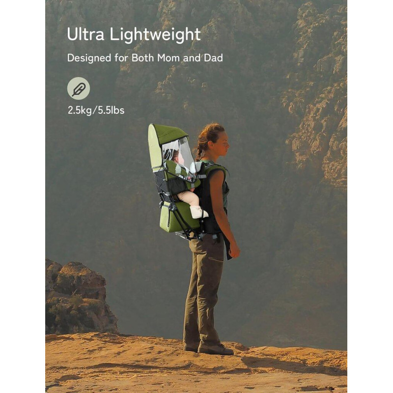 Pārnēsājiet savu bērnu droši un viegli: besrey pārgājienu mugursomas bagāžnieks ir īpaši izgatavots, paturot prātā mazuļa labsajūtu. Tai ir 5 punktu drošības jostas, kas ir izgatavotas no īpaši mīksta materiāla, un elastīgās siksnas un streses nodrošina mazulim ērtu un drošu pozīciju ceļojuma laikā.