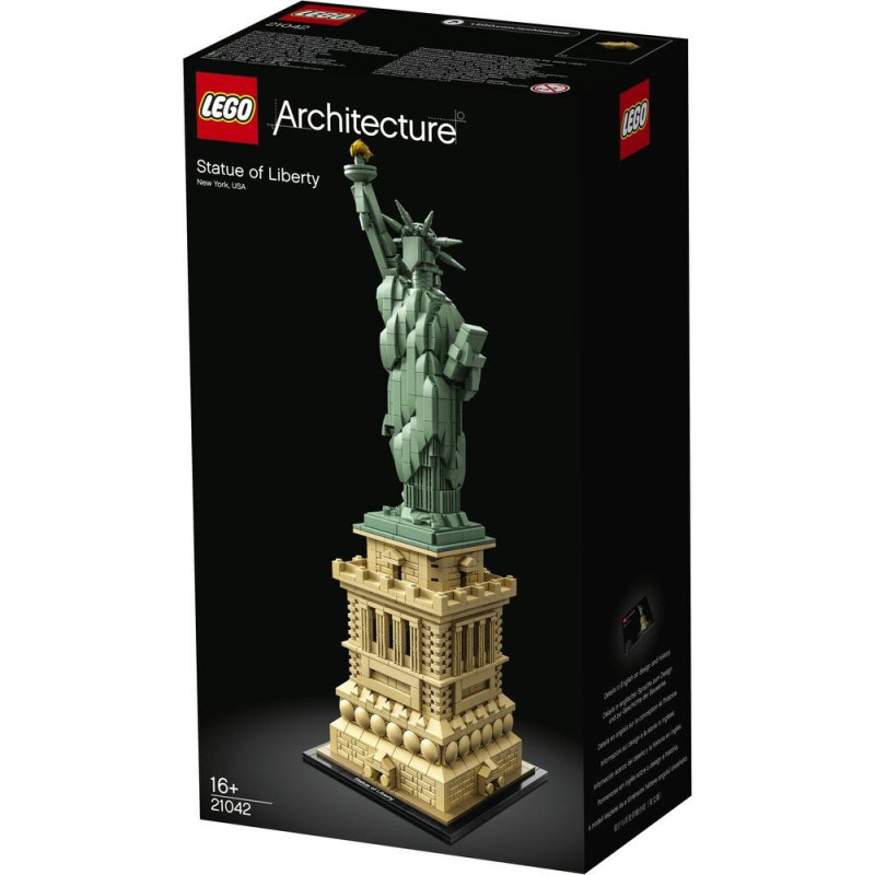 Uzbūvējiet vienu no pasaulē slavenākajiem nacionālajiem pieminekļiem no LEGO® klucīšiem, izmantojot šo LEGO Architecture 21042 Brīvības statujas komplektu. Brīvības statuja, kas atrodas gandrīz 100 metrus virs Brīvības salas, atrodas Ņujorkas ostā un uzņem apmeklētājus pa jūru no visas pasaules. Šī statuja, kas simbolizē brīvību, bija Francijas dāvana Amerikas Savienoto Valstu iedzīvotājiem un tika oficiāli iesvētīta milzīga pūļa priekšā 1886. gadā. 28. oktobris Šis detalizētais modelis atspoguļo harmonisku arhitektūras un skulptūras apvienojumu, ar detalizētu pjedestālu ar paneļu un ķieģeļu apdari un balkoniem aiz kolonnām, bet Brīvības statujai ar smalku dizainu ir rievots apmetnis, lauztas ķēdes, 7 staru kronis, plāksnīte un zelta lāpa rokās. Šim elegantajam LEGO Architecture modelim ir autentiska zaļgani bēša un brūngani dzeltena krāsa, un tam ir dekoratīva plāksnīte.