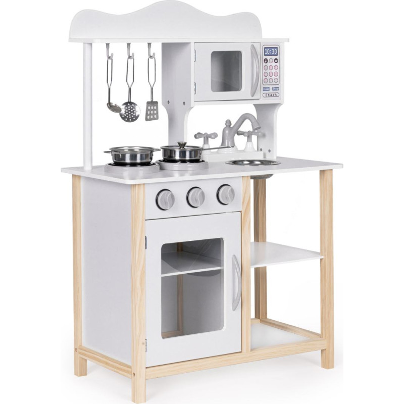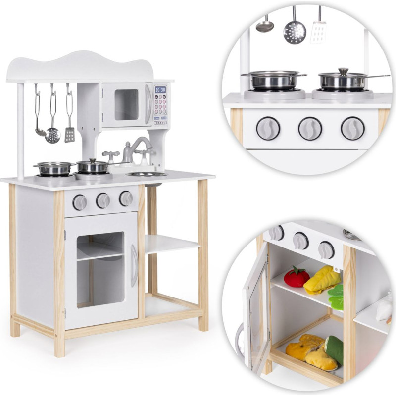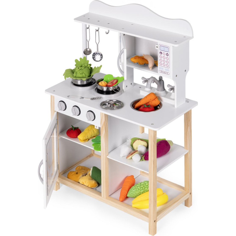 Ecotoys Drewniana kuchnia dla dzieci z piekarnikiem i akcesoriami do gotowania - biała ECOTOYS