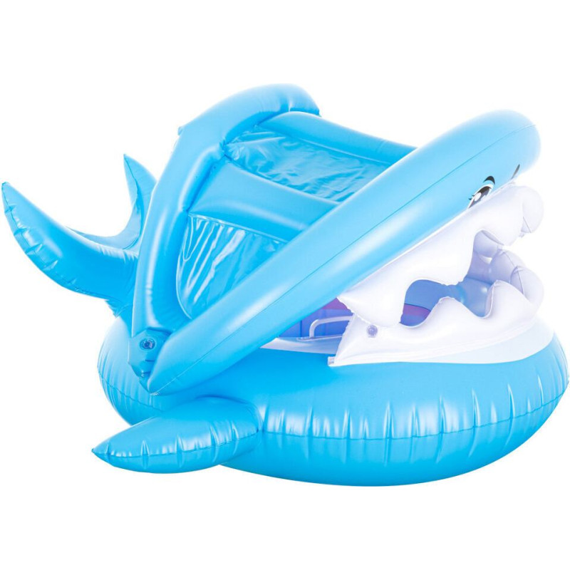 Super piepūšamā laiva ar nojumi - haizivs. Tas piesaistīs jūsu bērna uzmanību un mudinās viņu peldēt. Tam ir noņemams jumtiņš, kas pasargā no saules gaismas. Maksimālais bērna svars: 23 kg. Iekšējais diametrs: 25 cm. Pontona izmēri: 96x78x70 cm.