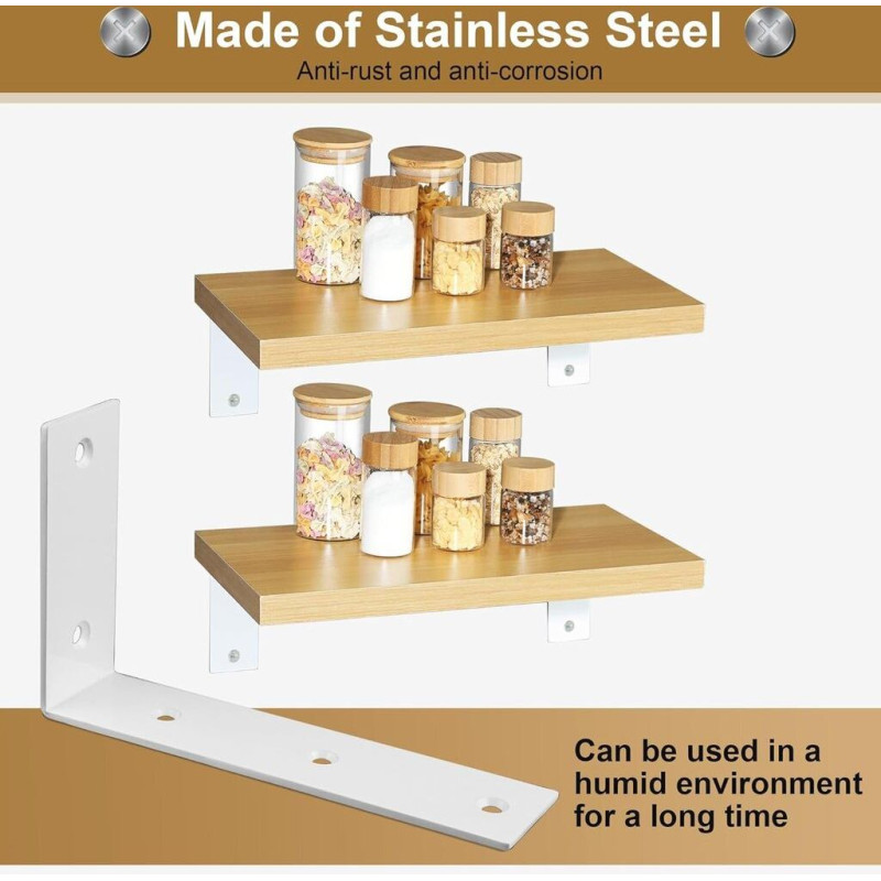 Lielas izturības plauktu kronšteini: Izgatavoti no augstas kvalitātes nerūsējošā tērauda 3 mm biezumā, pret rūsu un koroziju, ar spēcīgu nestspēju un ilgu kalpošanas laiku.