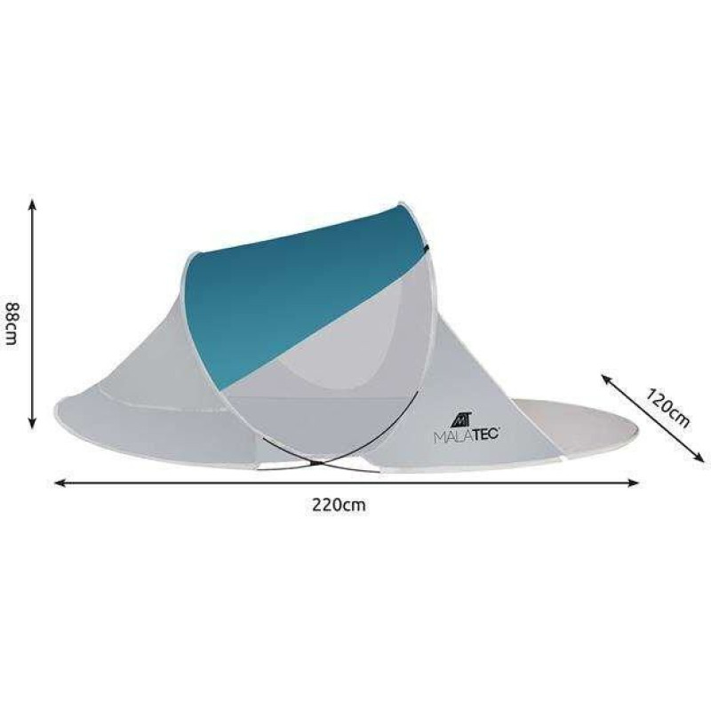 VIEGLA - pludmales telts ir viegla, sver tikai puskilogramu, tāpēc transportēšana nav problēma. Tomēr, neskatoties uz mazo svaru un daļēji atvērtu dizainu, telts ir stabila.