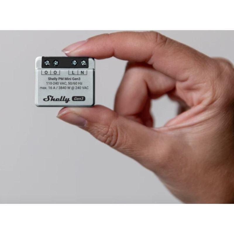 Pasaulē mazākais elektroenerģijas skaitītājs precīzai elektrības kontrolei. Automatizējiet apgaismojumu vai ierīces mazāk nekā 10 minūtēs un uzraugiet to enerģijas patēriņu no jebkuras vietas. Pietiekami mazs, lai ietilptu aiz jebkura sienas slēdža vai strāvas kontaktligzdas, Shelly PM Mini Gen3 var uzstādīt pēc izvēles un pilnībā integrēt ar jūsu esošo viedo ekosistēmu.