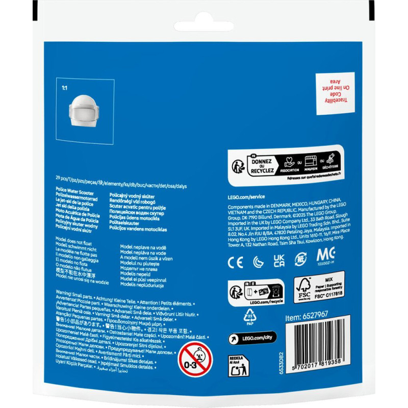 Ar „LEGO® City“ policijas ūdens motociklu komplektu, kurā ir policijas minifigūriņa ar glābšanas vesti, ķiveri un rokudzelžiem, jūs piedzīvosiet patrulēšanas piedzīvojumus, šķeļot viļņus. Citas īpašības: Detaļu skaits: 29 Kods, sērija: 30693 LEGO® City Ieteicamais vecums no 5 gadiem