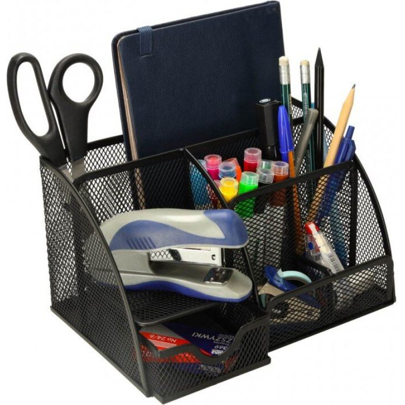 Uz jūsu galda vairs nav nekārtības! Galda organizators ir stila un funkcionalitātes apvienojums – septiņi dažāda izmēra nodalījumi ļauj sakārtot darba vietu. Pateicoties kompaktajiem izmēriem (22 x 11 x 10,2 cm), tas iederēsies pat uz mazākā galda. Minimālisma dizains mūžīgā melnā krāsā ir lieliski piemērots gan modernam birojam, gan studentu istabai.