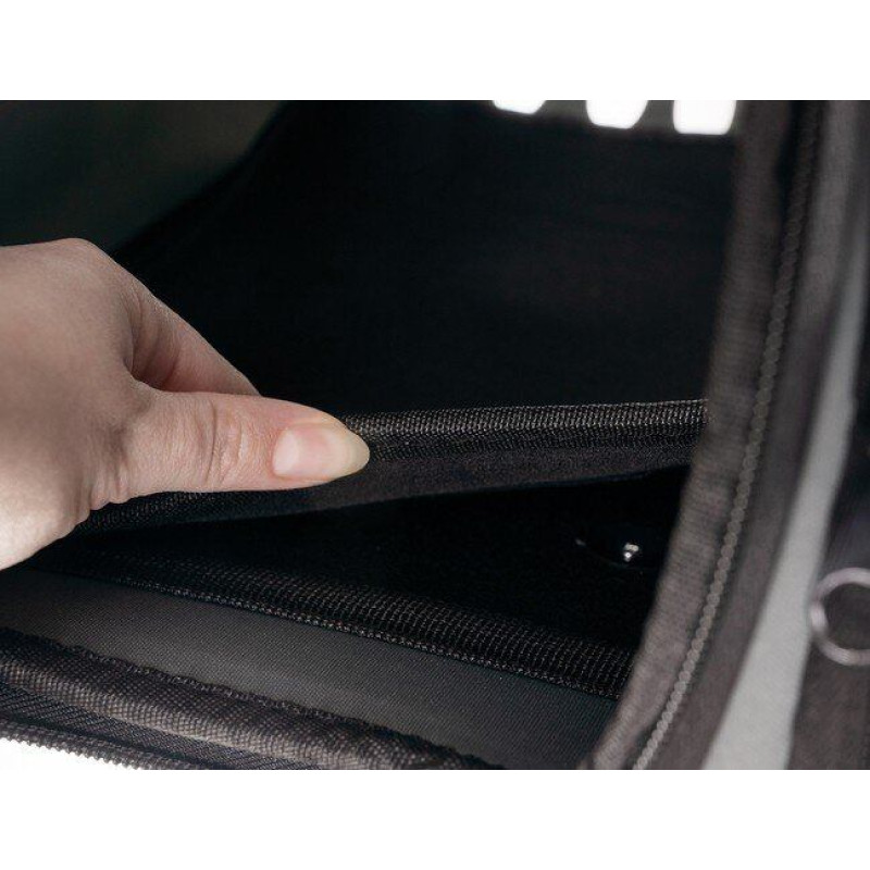 KONVEIERA SIKSNA NESĀŠANAI UN SALOKAMAI - regulējama siksna pārnēsāšanai pāri gultai ar iespēju pilnībā atvērt un ergonomisks rokturis no somas ērtai transportēšanai, mājdzīvnieks ir ērti lietojams. Īpaši ērts rāvējslēdzējs priekšpusē un 2 nesēja sānos atvieglo dzīvnieka iekļūšanu un izkāpšanu. Soma salokās līdz mazam izmēram, padarot to ārkārtīgi viegli uzglabājamu.
