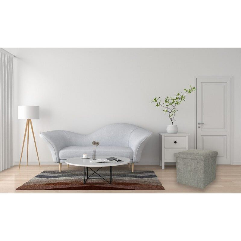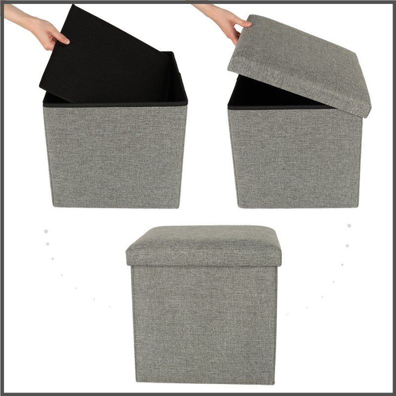 Saliekamais pufs ar glabāšanas kasti ir lielisks risinājums jebkurai mājai – tā ir vieta, kur sēdēt un glabāšanas kaste vienā. Pufs ir stabils un var izturēt slodzi līdz 100 kg. Produkta pelēkā krāsa lieliski iederēsies jebkurā interjerā. Izmēri: 38x38x38 cm.