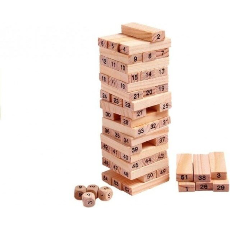 Spēle sabrūkošs tornis Koka rotaļlietas, 54 gab.