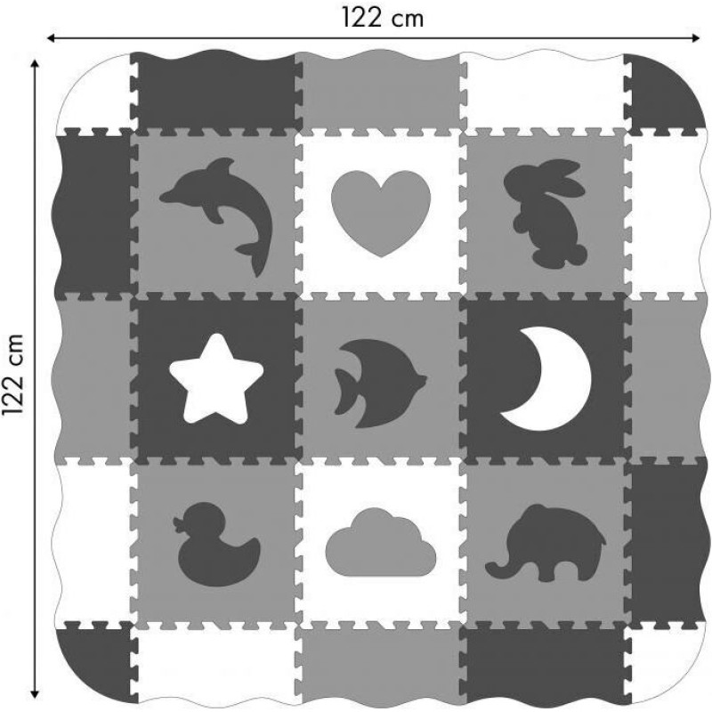 No mīkstām EVA putām izgatavotais izglītojošais paklājiņš - puzle ir lieliski piemērots maziem bērniem, kuri mācās spert savus pirmos soļus. Izveidojot sieniņas, paklājiņš tiek pārvērsts par baseinu, ko var piepildīt ar krāsainām bumbiņām (nopērkamas atsevišķi).