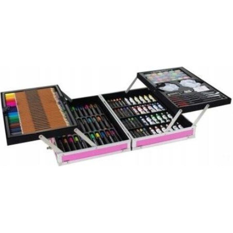 Plastmasas bilžu komplekts koferī 145el rozā krāsā