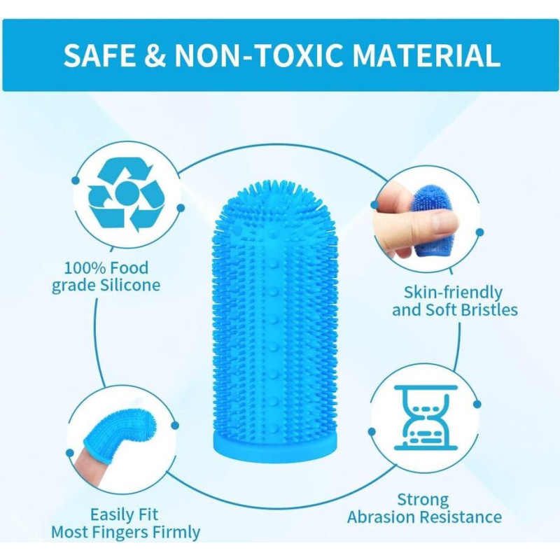 Divu veidu birstes galviņas. Konusveida izliektās virsmas birste var efektīvi noņemt zobu aplikumu un zobakmeni, bet smalkā birste var apmierināt ikdienas zobu tīrīšanas vajadzības. Suņa pirkstu zobu birste ar šo divu veidu birstes galviņām rūpīgi iztīra suņa zobus.